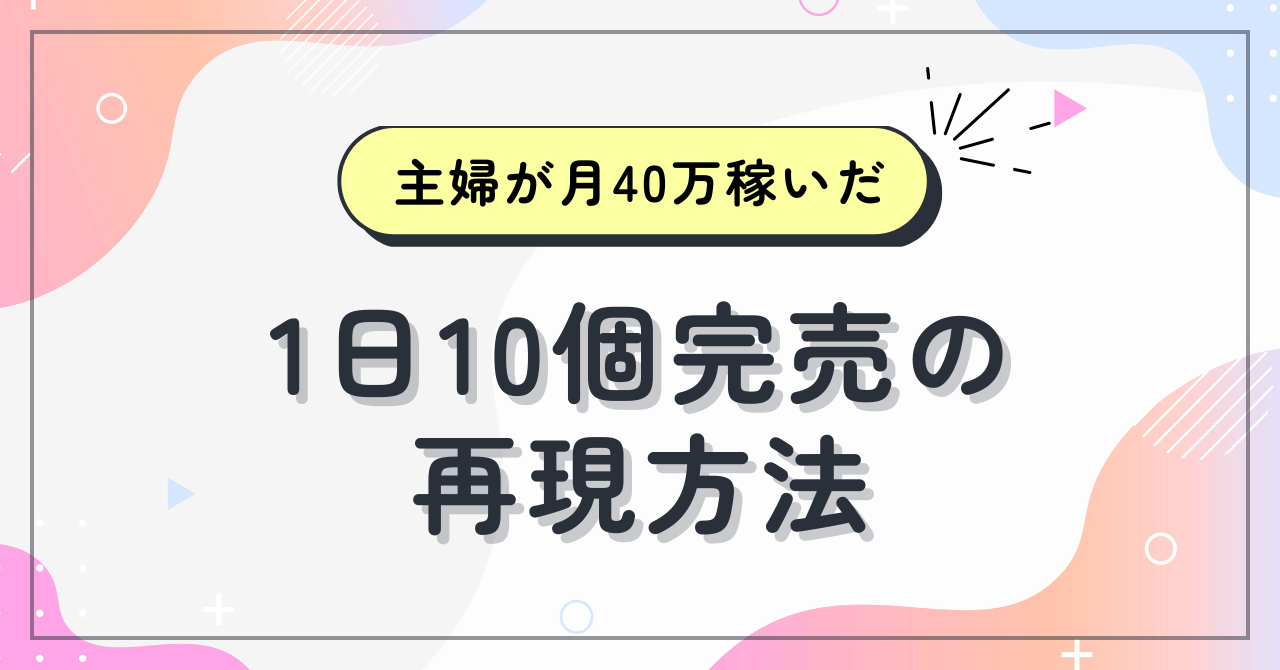この記事では、育児と家事に奮闘する中で、たった1日で10個売れた実例をもとに、