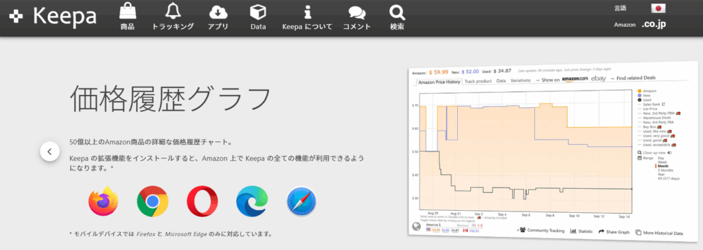 価格推移や出品者数の履歴をグラフで表示。仕入判断の精度を上げたい方にぴったり。