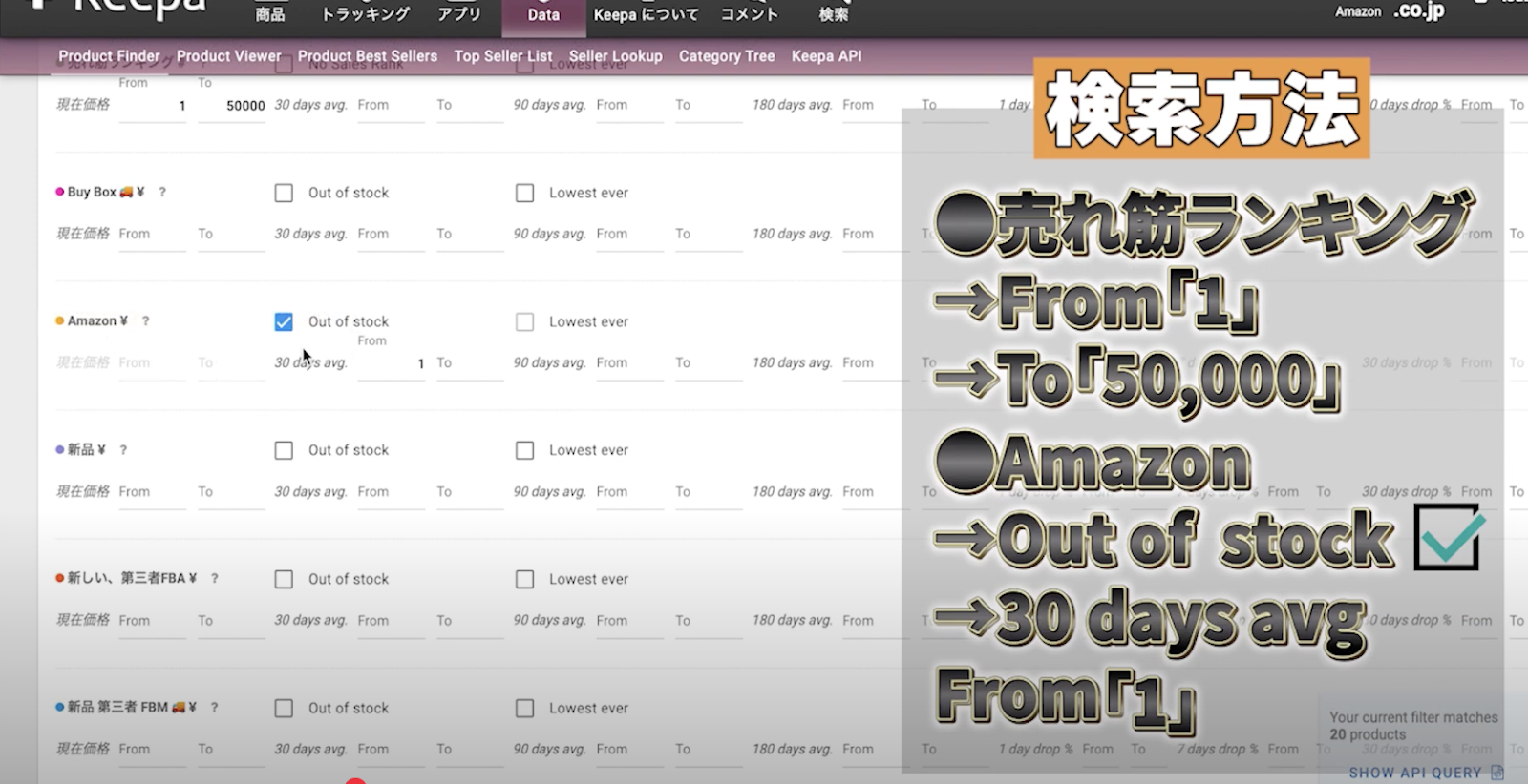 2. 利益商品の絞り込み条件(Keepa プレミアム)