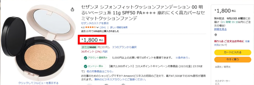 - 価格差:仕入れ価格1,078円に対し、Amazon販売価格は1,800〜2,000円台