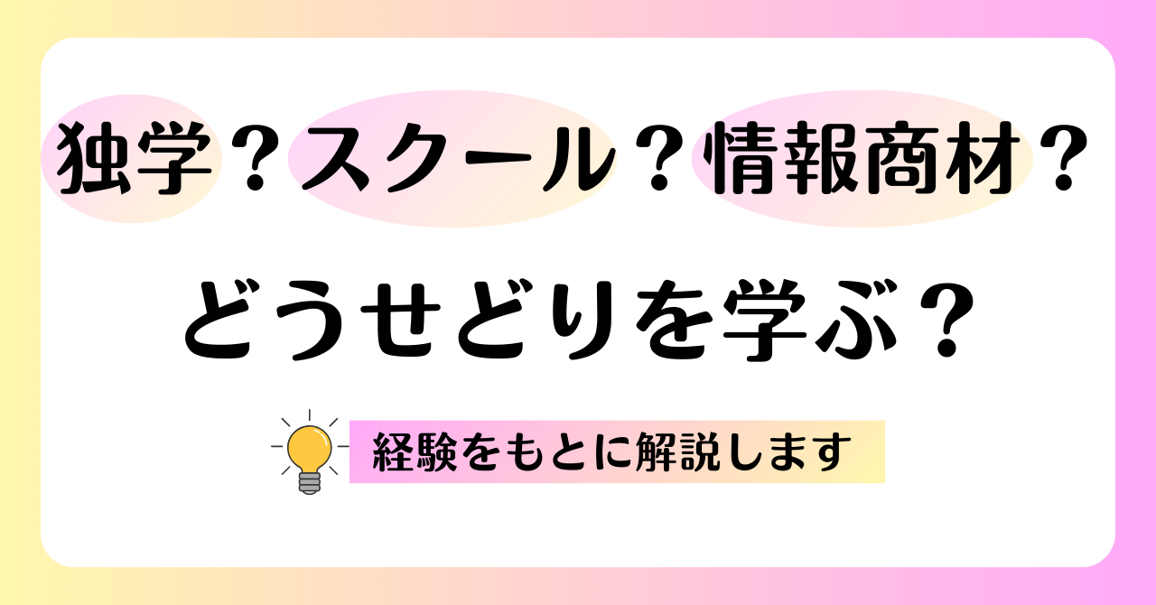 この記事では、私自身の体験を元に、スクール、コミュニティ、情報商材それぞれのメリット・デメリットを詳しく解説します。