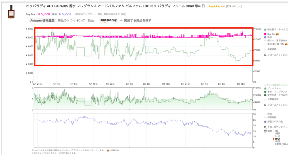 チェック②:Keepaで「過去のランキング推移」を確認!