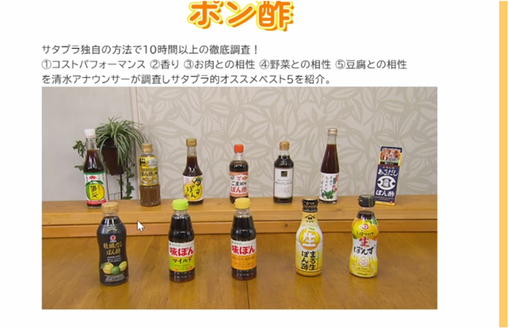 今回のテーマは、TBS系番組「サタプラ」で紹介されたポン酢のランキング商品。